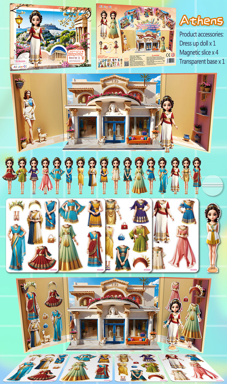 Each theme features a unique city story, from the bustling streets of Shanghai to the mythical beauty of Athens, helping kids learn about world cultures in a fun way.